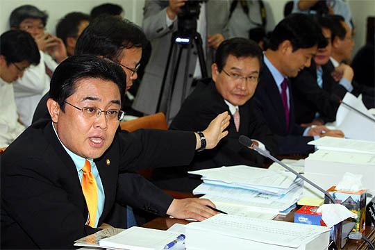 5일 오전 서울 세종로 문화체육관광부 국정감사장에서 열린 문화체육관광부 국정감사에서 민주당 전병헌 의원이 고흥길 위원장에게 신상발언 기회를 요구하고 있다.