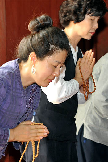 대학수학능력시험을 한 달 앞둔 12일 완주 소양면 송광사에서 수험생 자녀를 둔 어머니들이 수능 고득점을 기원하는 기도를 하고 있다.
