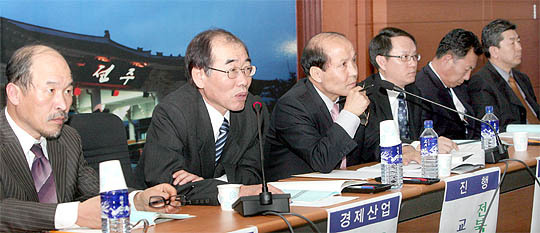 16일 전주시가 내년도 예산편성을 위한 2010참여예산 종합 토론회를 개최한 가운데, 우석대학교 유대근 교수가 전주경제 발전방안에 대해서 발표하고 있다.