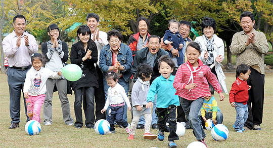 도내 공개입양 가족들의 모임인 한사랑회 전북모임이 열린 지난 17일 전주동물원에서 아이들이 힘차게 공을 차는 모습을 부모들이 즐겁게 바라보고 있다.