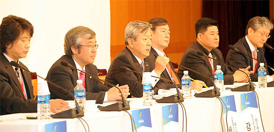 19일 전북도청 대회의실에서 열린 세계해외한인무역협회 국제위원 초청 국제 심포지엄에서 참석자들이 전북의 국제화 방안 모색 토론을 하고 있다.