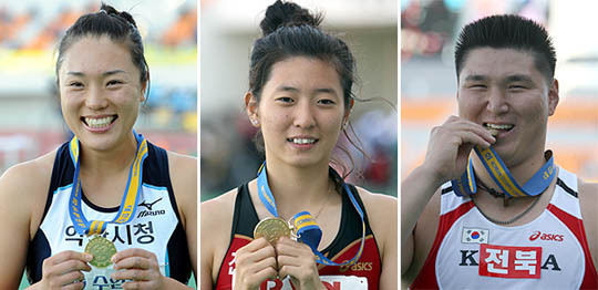 왼쪽부터 강나루(해머)·김지은(여고부 100m)·이윤철(해머).