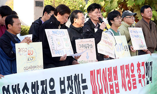 민영방송발전을 보장하는 미디어랩법 제정을 촉구하는 기자회견이 20일 전주시 진북동 한국은행 앞 광장에서 언론인 25명이 참석한 가운데 열렸다.