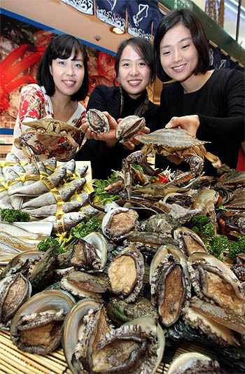 21일 롯데마트 서울역점에서 유명 포구의 수산물을 저렴하게 판매하는 '대한민국 수산물 유명포구전'이 열려 신진도 안흥포구의 꽃게, 완도 청해포구의 전복, 영광 법성포구의 굴비등 각종 수산물이 고객들을 유혹하고 있다. 이 행사는 22일부터 28일까지 7일동안 롯데마트 전점에서 열리며 정상가 대비 평균 22% 가량 저렴하게 판매된다.