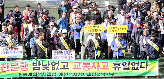 22일 전주시 덕진체련공원에 열린 개인택시 교통사고 줄이기 결의대회 및 체육대회에서 참석자들이 안전운전을 다짐하고 있다.