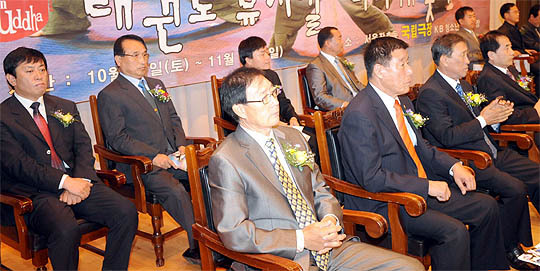개회식에 참석한 내빈들이 우석대 태권도학과 시범단의 공연을 보고 있다.