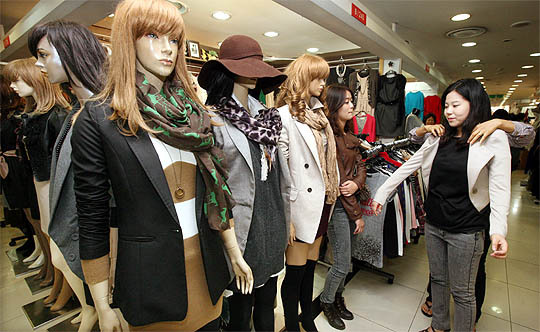 갑작스러웠던 추위가 한걸음 물러난 4일 전주시 고사동의 한 의류매장을 찾은 고객들이 스타일과 추위를 한번에 잡을 수 있는 반코트를 살펴보며 직접 입어보고 있다.