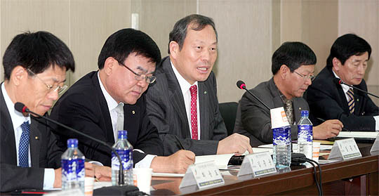 12일 농협전북본부에서 열린 전북경제원탁회의에 김종령 한국토지주택공사 전북지역본부장(가운데)이 2009년 전라북도 경제동향에 대해 발언을 하고 있다.