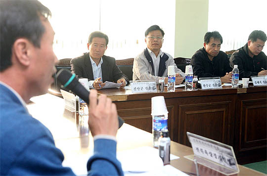 제21회 전북역전마라톤대회를 위한 제1차 감독자회의가 12일 전북일보사 7층 회의실에서 열린 가운데 도내 시군 선수단 대표들이 안전유의점에 대한 설명을 듣고있다.