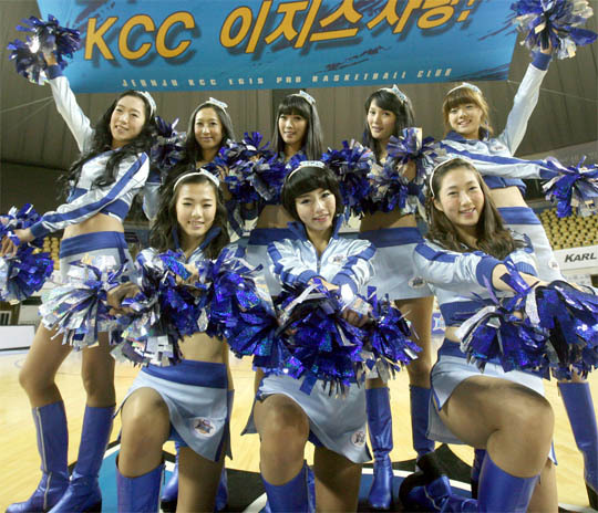 농구장의 꽃이자 전주 KCC농구단의 여섯번째 선수인 치어리더들이 포즈를 취하고있다.