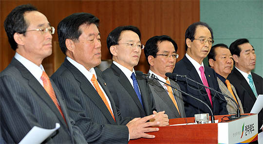18일 전북도청 브리핑룸에서 열린 한국토지주택공사 본사 유치 관련 전북도 입장 기자회견에서 김완주 지사 등 참석자들의 표정이 굳어 있다.