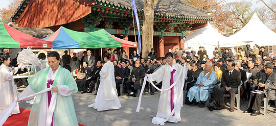 20일 전주 경기전 앞마당에서 열린 전북 국민보도연맹 사건 희생자 합동 위령제에서 진혼굿을 하고 있다.