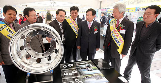 20일 전주 오거리문화광장에서 열린 2009 전북벤처기업 제품로드쇼 및 직거래 판매전에 참석자들이 진열되어있는 제품들을 살펴보고 있다.