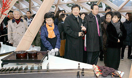 한국음식문화 관광상품 개발 발표회 20일 서울 경복궁에서 열려 송하진 전주시장과 이남식총장등이 행사장을 둘러보고 있다.