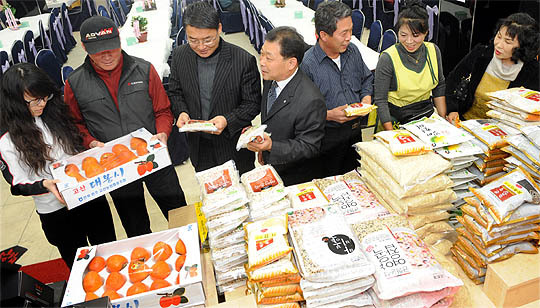 26일 전주 동백예식장에서 열린 전북교육포럼 바자회에서 참석자들이 지역특산품들을 고르고 있다.