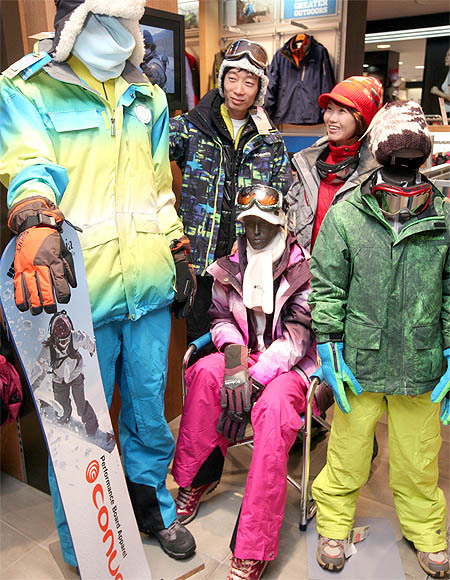 전국 대부분의 스키장이 지난주 개장하면서 롯데백화점전주점을 찾은 고객들이 스키, 보드복과 고글 등을 입어보며 겨울 스키시즌을 준비하고 있다.