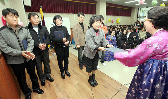 1일 대한주부클럽연합회 전주·전북지회에서 열린 제12회 전북소비자대회에서 착한가게로 선정된 업소대표들이 착한가게 인증서를 전달받고 있다.
