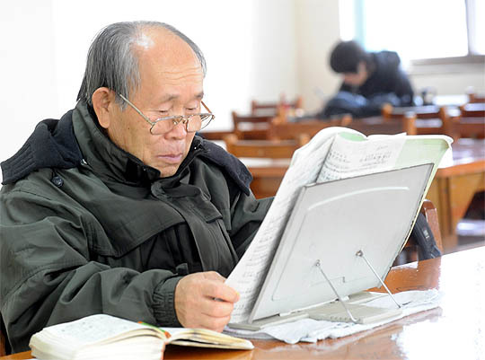 전주시립도서관을 찾은 1일 도서관을 찾은 70대 노인이 열람실에 앉아 책을 보고 있다.