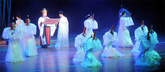 4일 전주 소리 문화의 전당에서 열린 광대의 노래 공연에서 김명곤 전주세계소리축제 조직위원장이 공연의 시작을 알리고 있다.
