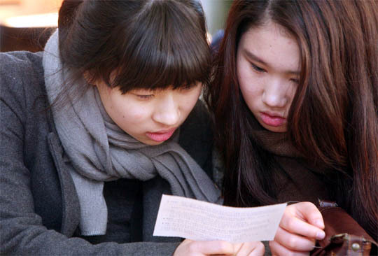 2010학년도 대입수학능력시험 성적이 발표된 8일 전주 성심여고의 학생들이 성적을 확인하고 있다.