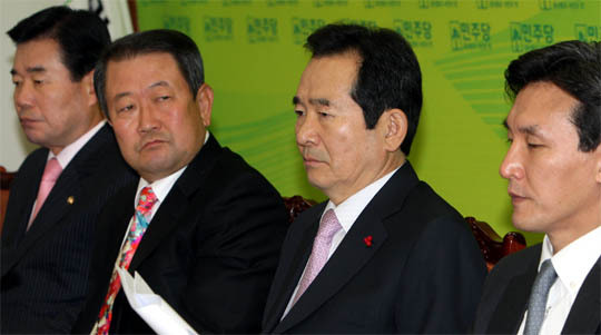 9일 오전 국회에서 열린 민주당 최고위원회의에서 정세균 대표와 최고위원들이 굳은 표정으로 이강래 원내대표의 얘기를 듣고 있다.