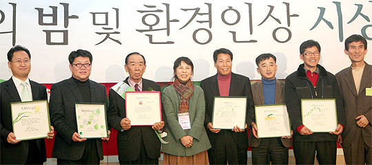 19일 전주컨벤션홀에서 열린 '2009 전북환경운동연합 송년의 밤' 행사에 2009 전북환경인상 수상자들이 기념촬영을 하고 있다.