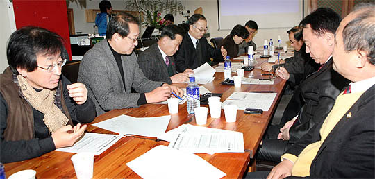 29일 전주 교동아트센터에서 열린 '전라감영, 4대문 복원 추진위원회'에서 추진위원들이 복원방향과 복원방법을 등을 논의하고 있다.