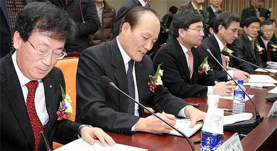 11일 전북도청에서 열린 육상풍력발전단지 조성 MOU 체결식에 참석한 기업대표들이 협약서에 서명을 하고 있다.