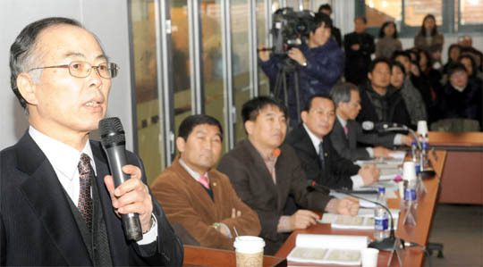 12일 전주 최명희문학관에서 열린 전주혈맥잇기사업 기본계획(안) 공청회에서 채병선 전북대교수가 혈맥잇기사업 기본계획안에 대해 발표를 하고 있다.