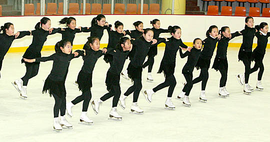 전주 인후초등학교 피겨팀 학생들이 다음달 2일 열리는 동계체전을 앞두고 전주화산체육관 지하 아이스링크에서 구슬땀을 흘리며 연습을 하고 있다.