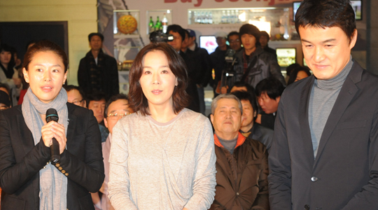 20일 전주시청 로비에서 임권택 감독의 101번째 영화 '달빛 길어올리기' 고사에서 출연배우들이 영화 촬영의 무사 진행을 기원하고 있다.
