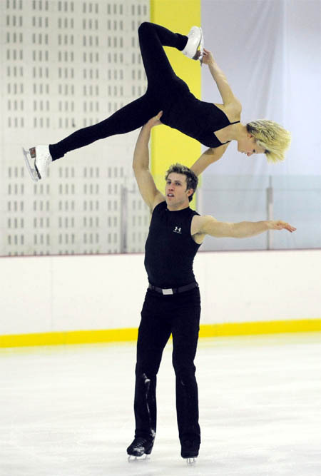 2010 국제빙상경기연맹(ISU) 4대륙피겨선수권대회가 27일부터 나흘간 전주에서 열리는 가운데 25일 전주 화산체육관 실내빙상장에서 페어 부문에 출전할 선수들이 연습 경기를 하고 있다.