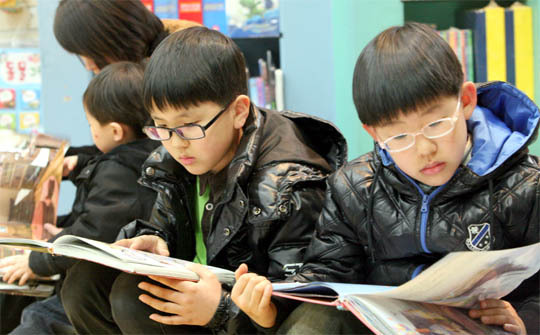 개학을 얼마 남겨두지 않은 초등학생들이 27일 전주의 한 서점에서 독서에 집중을 하고 있다.