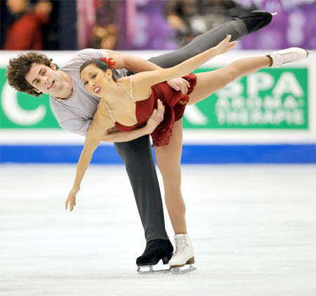 27일 전주 화산체육관 실내빙상장에서 열린 2010 국제빙상경기연맹(isu) 4대륙피겨선수권대회 페어스케이팅 쇼트 프로그램에서 2위를 차지한 키우나 맥러글린-로크네 브루베이커 선수가 매혹적인 연기를 선보이고 있다
