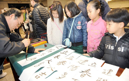 입춘을 4일 앞둔 지난 31일 국립전주박물관에서 시민들에게 새해의 시작을 알리는 경인년 입춘첩을 써주고 있다.