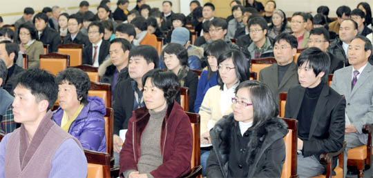 지난달 28일 전북도청 중회의실에서 열린 2010 전북지역 사회적기업 민관 연찬회에서 참석자들이 운영 활성화 방안에 대한 강연을 듣고 있다.