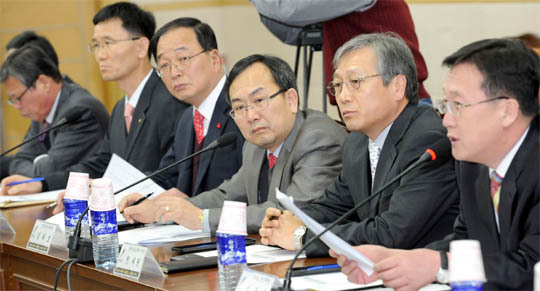 1일 전북도청 중회의실에서 열린 전일저축은행 사태 수습을 위한 전라북도 대책위원회에서 참석자들이 영업정지에 따른 피해 시민들의 피해 최소화 방안에 대해 논의를 하고 있다.