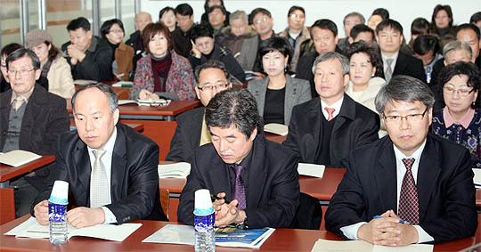 4일 전주 최명희문학관에서 열린 전주한지산업 발전을 위한 포럼에 참석자들이 전주한지산업의 경쟁력 강화 전략 및 세계화 방안에 대한 발제를 듣고 있다.