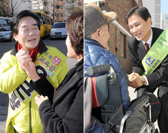 6·2 지방선거 교육감 예비후보 등록이후 첫 휴일인 7일 오근량 후보와 신국중 후보가 주말 유세활동을 하고 있다.