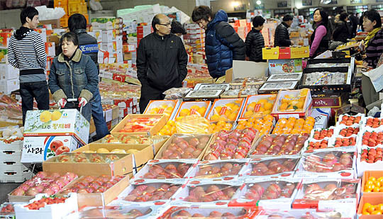 민족 최대 명절인 설을 3일 앞둔 11일 전주 송천동 농수산 시장에서 시민들이 과일을 사기위해 발걸음이 분주하다.
