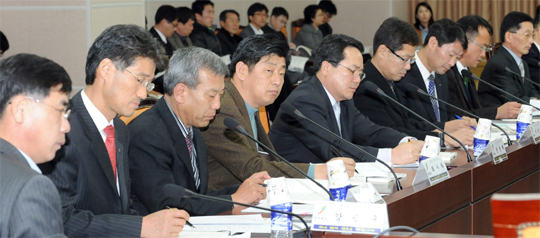 22일 전북도청 종합상황실에서 열린 전북 농식품 수출 활성화 방안 간담회에서 참석자들이 농식품부 중점시책 설명을 듣고 있다.