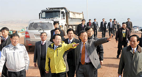 김완주 도지사와 유관기관장들이 23일 신시도 33센터에서 새만금 방조제 준공행사와 2010 새만금 깃발축제 유관기관 현안 점검회의를 마치고 현장을 둘러보고 있다.