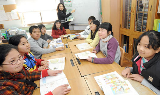 전국 첫 통합 학교이자 도내에서 유일한 안천초중고교의 초등학생들이 다른 학교 교실의 절반 크기인 비좁은 교실에서 수업을 받고 있다.