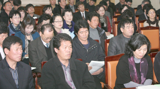 지난달 26일 도청에서 열린 친환경농업 상생방안 세미나에서 참석자들이 친환경농산물의 생산자와 소비자간의 현황 진단을 듣고 있다.