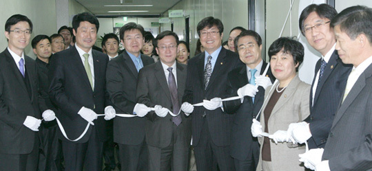 4일 익산국가식품클러스터사업 추진단 발족식에서(왼쪽 두번째부터) 이한수 익산시장, 이남식 전주대 총장, 이경옥 행정부지사, 이춘석 의원, 장태평 장관, 조배숙 의원, 민승규 차관 등이 추진단 발족을 축하하고 있다.