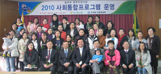 장계농업협동조합(조합장 박성근)은 9일 2층 회의실에서 '법무부 의무지정 2010 사회통합 프로그램' 개강식을 가졌다. 수강생들은 앞으로 법무부 전주출입국관리사무소의 테스트를 거쳐 한국어 초급1·2반 및 고급반으로 나뉘어 교육을 받게 된다.