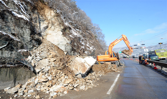 11일 새벽 2시 50분께 전주시 색장동 어은교 앞 야산의 절개지 일부가 무너져 내려 전주~남원간 17번 국도 남원방향 2차로가 10시간 가까이 통제됐다. 집채만한 바위와 토사 등 250t 가량이 도로를 덮친 이날 사고는 최근 잇따라 내린 눈과 비로 지반이 약해진 것이 원인으로 분석되고 있다.