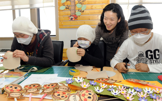 전북대병원 한누리 병원학교의 수업시간에 학생들이 만들기를 하고 있다.