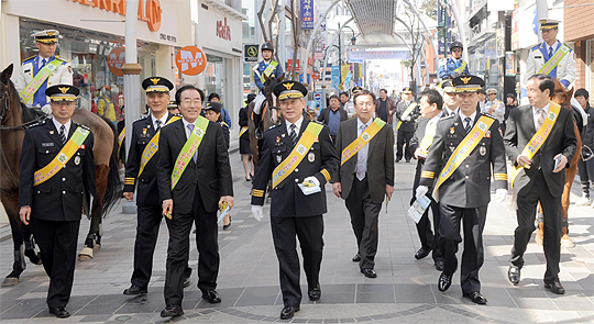 법질서 확립 전북도민 결의대회가 26일 전주 오거리문화광장에서 손창완 전북경찰청장과 이경옥 행정부지사 김택수 상공회의소장과 시민 300여명이 참석한 가운데 열렸다.