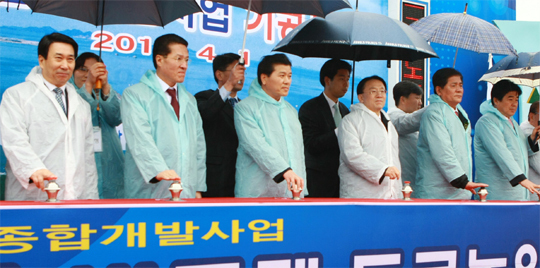 새만금 방조제 바다쪽 조망권 확보를 통한 관광 기능개선 등을 위한 1호방조제 높임공사 기공식이 1일 오후 2시 새만금방조제 시점 부지인 부안군 변산면 대항리 선착장 부지에서 김완주 도지사·김호수 부안군수·김경안 농어촌공사 감사·조인현 새만금사업단장·이덕룡 부안군애향운동본부장을 비롯한 기관단체장과 시공사 관계자·지역주민 등 500여명이 참석한 가운데 개최됐다.